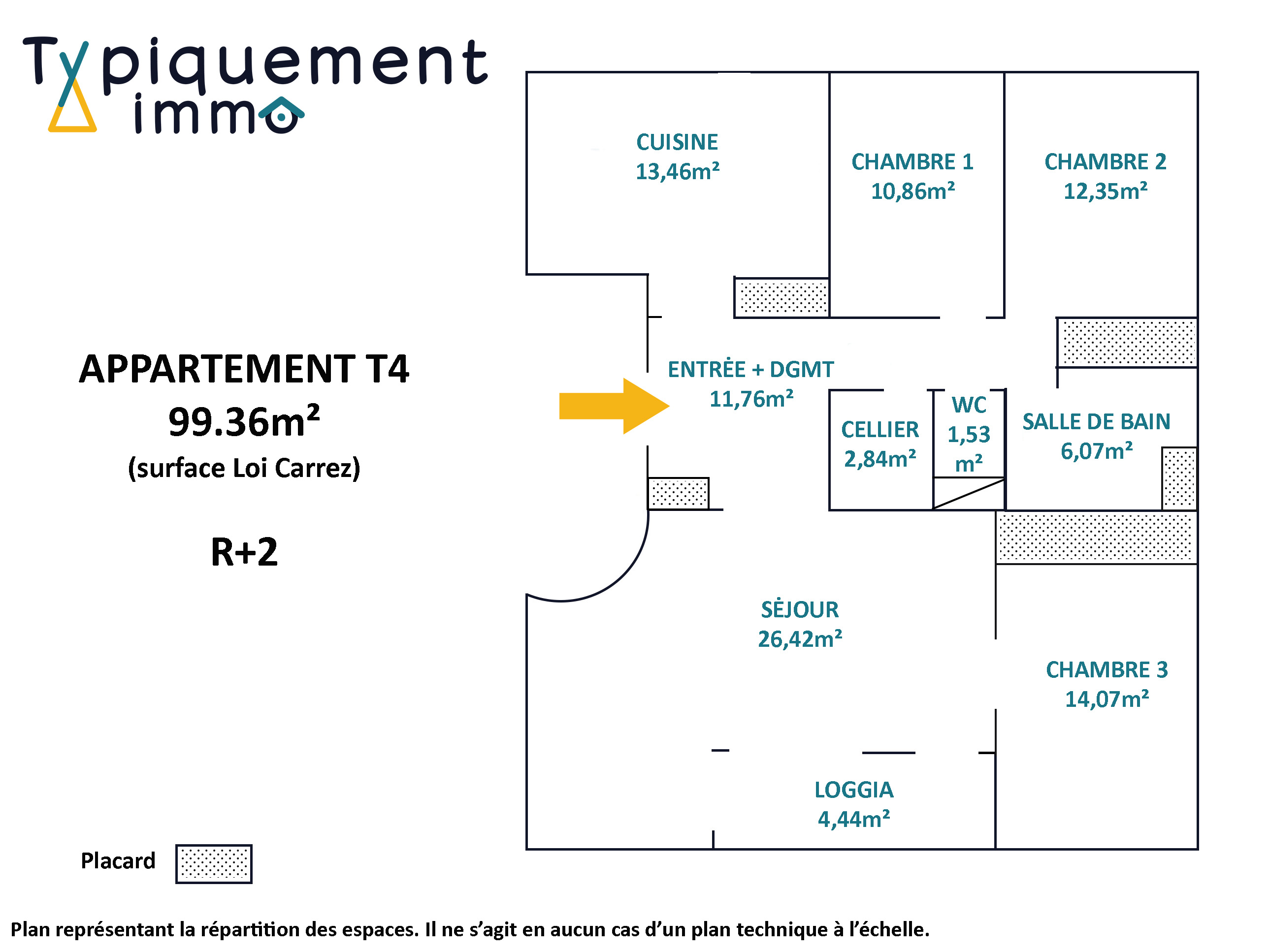 Plus concrètement, il dispose d'une entrée avec large dégagement, d'un spacieux séjour de 26,5m², d'une cuisine équipée, de 3 chambres, d'une salle de bain, de toilettes séparés et d'un cellier intérieur à aménager à votre convenance. Ses nombreux placards, le double vitrage, le chauffage au gaz et sa bonne performance énergétique participeront à votre confort, tandis que sa loggia vous offrira des petits déjeuners ensoleillés.