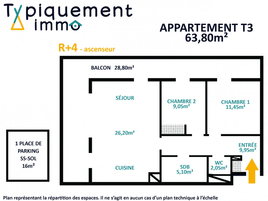 EN EXCLUSIVITÉ, TYPIQUEMENT IMMO, L'Agence immobilière AU FORFAIT unique, vous propose à la vente ce bel appartement T4 de 63,8m² localisé à Toulouse, quartier Montaudran-Lespinet. A quelques mètres seulement de la Halle à la Machine, vous bénéficierez d'un véritable lieu de vie où activités (musée, cinéma), détente (espace verts), commerces et transports en commun (bus métro Rangueil, future ligne de métro) sont accessibles en un rien de temps.
