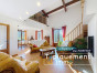 Plus concrètement, elle dispose d’une entrée avec placard, de wc avec lave-mains, d’une spacieuse pièce de vie déplafonnée avec espaces salon et salle à manger, d’une cuisine dinatoire pouvant être ouverte sur le séjour, d’une mezzanine, d’un couloir avec placard, de 3 chambres avec mezzanine, d’une 4ème chambre, d’une salle de bains communicante avec la 4ème chambre, d’une 5ème chambre, d’une salle d’eau, ainsi que de wc séparés. Au niveau inférieur, elle présente une buanderie, une partie garage aménagé, ainsi qu'un garage.