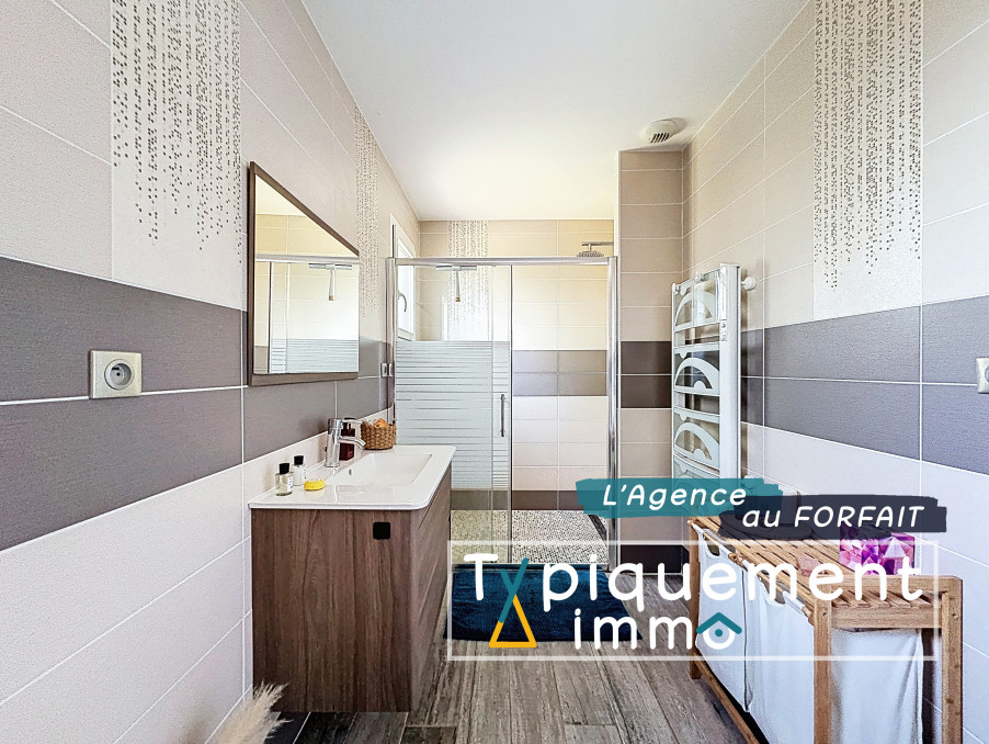 Plus concrètement, construite en 2014 de plain-pied, elle dispose d'une entrée avec placard, d'une belle pièce de vie avec cuisine ouverte, d'un cellier attenant à la cuisine, d'une salle de bains avec douche et baignoire, d'une chambre parentale avec salle d'eau, wc et dressing, de 2 autres chambres avec placard et salle d'eau privative, d'une 4ème chambre avec placard, et de toilettes séparées. A l'étage, elle offre un espace mezzanine de 24m² au sol. Un garage vient également compléter le bien.